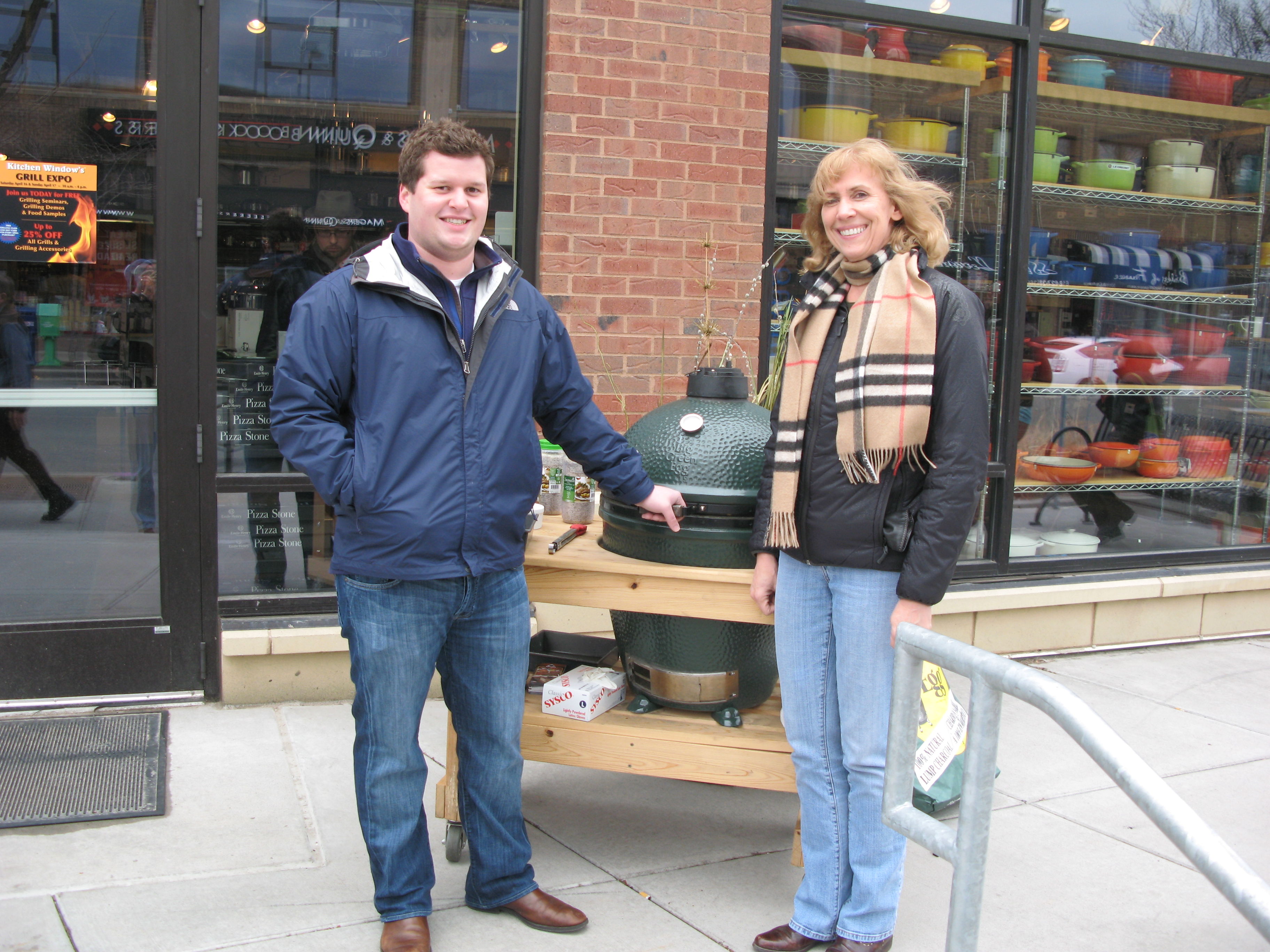 As the wind ripped through my jacket, I was amazed that the weather didn’t stop these locals from standing outside for a 15-minute cooking demo. Clearly, the sights and smells from chicken grilling were too irresistible to pass by. Some had never seen a Big Green Egg before and those who were familiar with it wanted to check it out more closely. The crowd became very engaged with one another as they exchanged tips and stories about grilling, which created a fun vibe outside the store. The demo clearly increased foot traffic into the store as shoppers sought out more information about the Big Green Egg and other products.