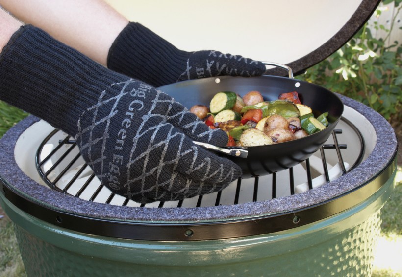The Big Green Egg Pit Mitt® BBQ Glove is an aramid fiber soft glove that allows the user to handle hot items around and directly off of a very hot grill. The washable Pit Mitt is reversible for left or right hand and has silicone on the surface for a superior grip.