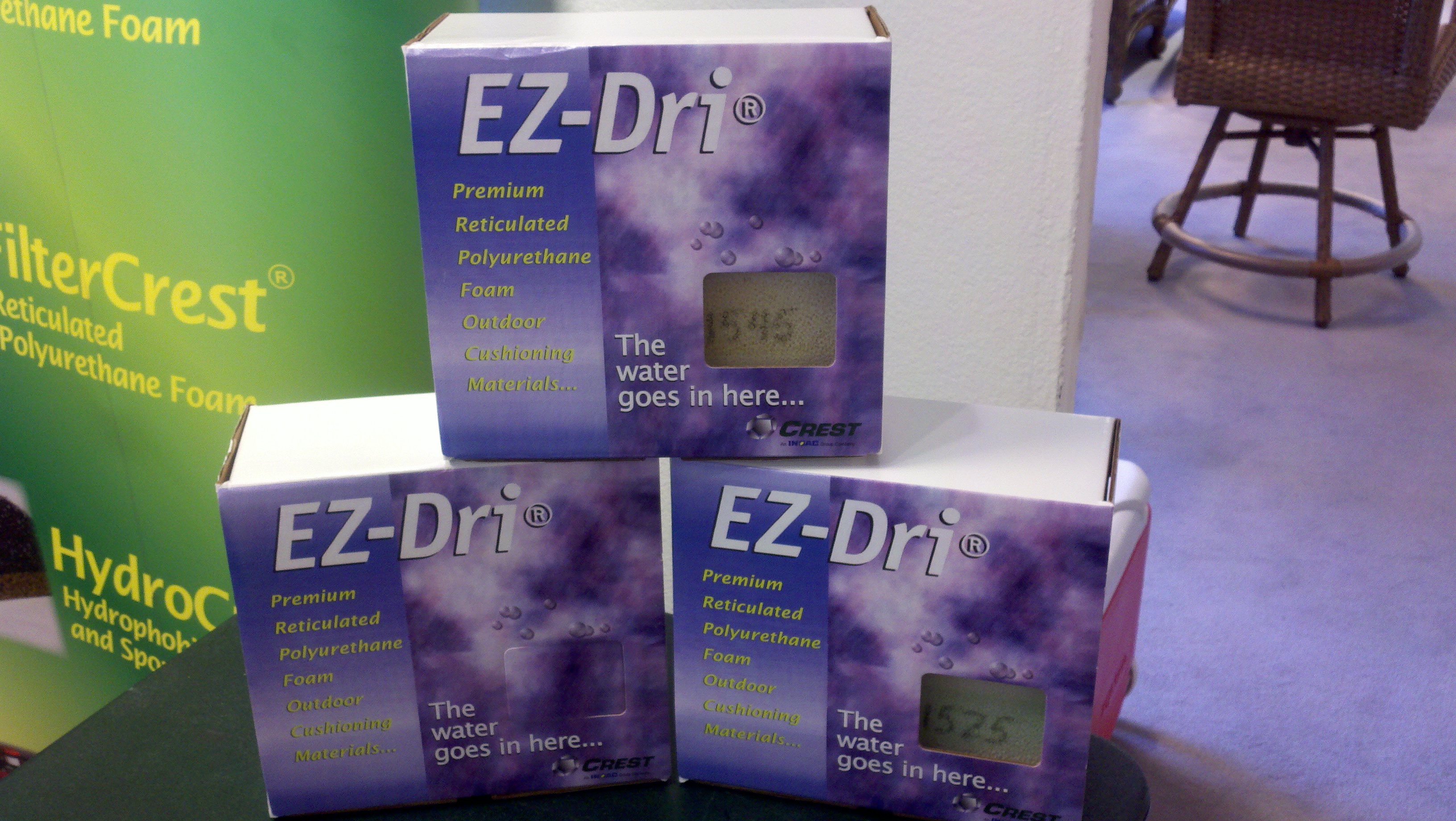 Crest Foam's EZ-Dri - The unique proprietary formulation of EZ-Dri makes furniture cushions stronger for long term exposure to inclement weather.