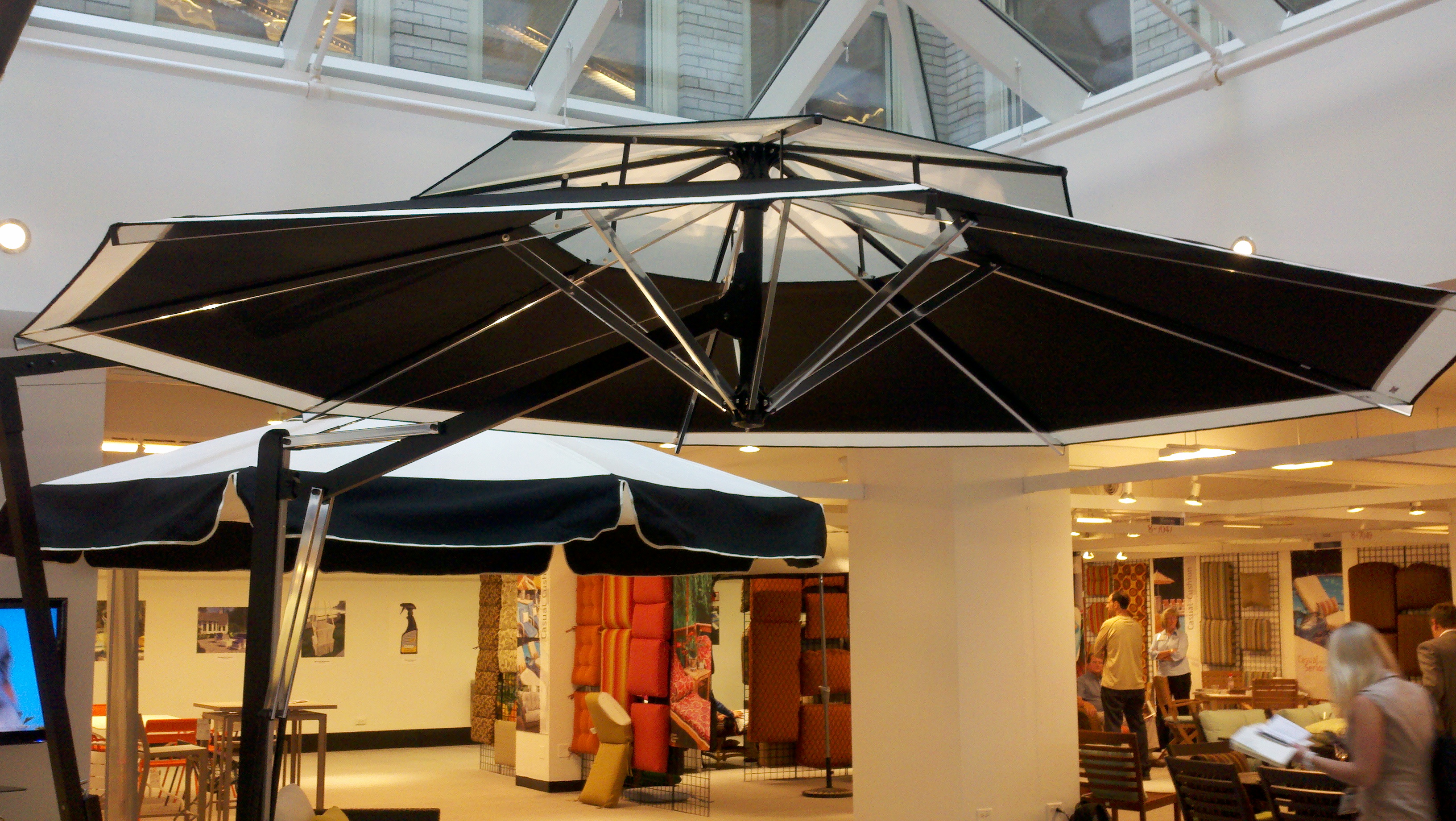 Caravita's Belvedere Collection - This group's innovative cantilevered shade (designed by Ramsey Jay Prince) has one of the industry's most unique opening and closing mechanisms.