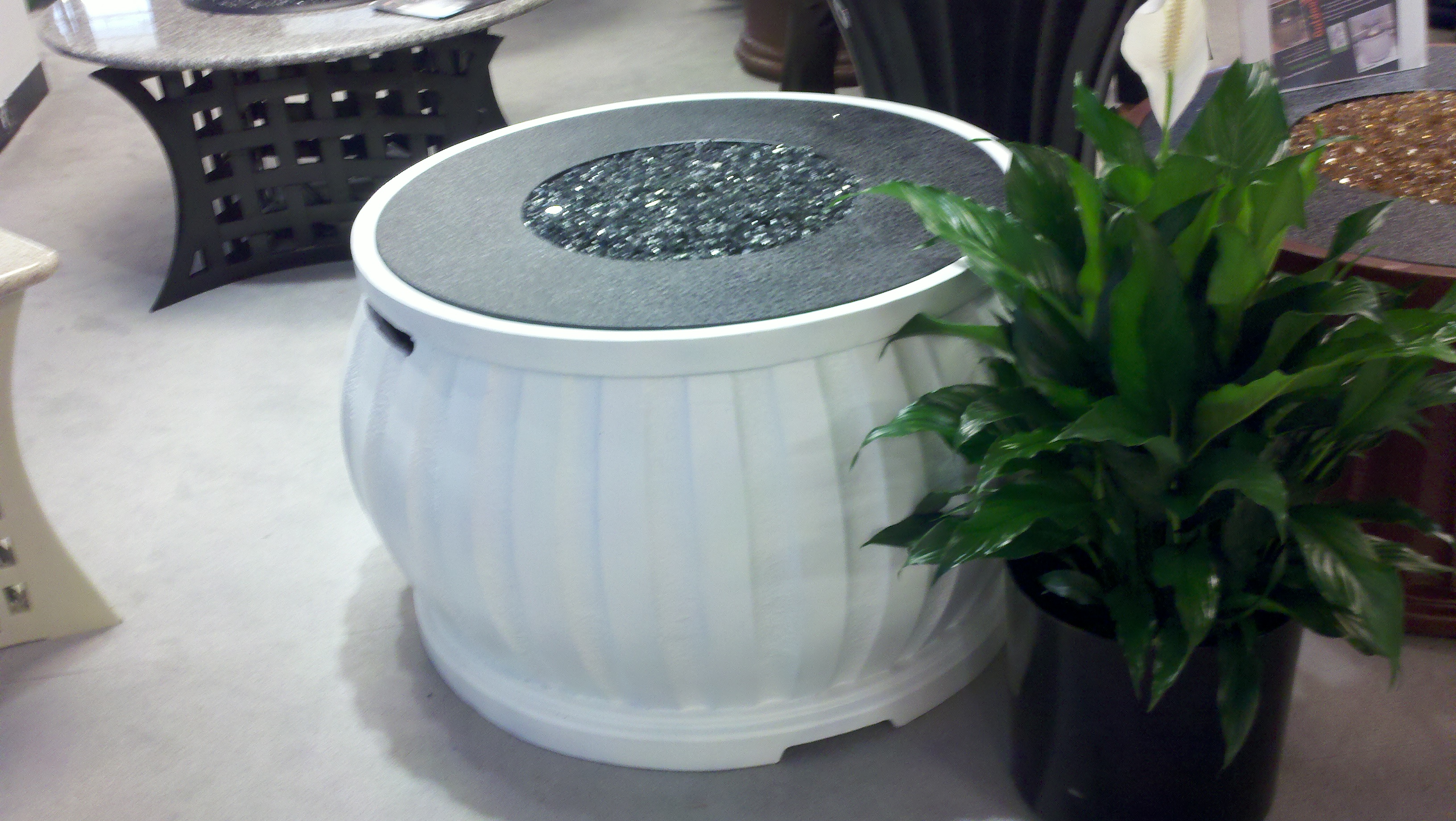 California Outdoor Concepts El Paseo Chat - Part of the Elegant Series, the El Paseo Chat is a contemporary styled firepit that adds glamour and warmth to an outdoor setting. Available in a 48" or 54" granite table top with choice of gas logs or Arctic Flame Glass.