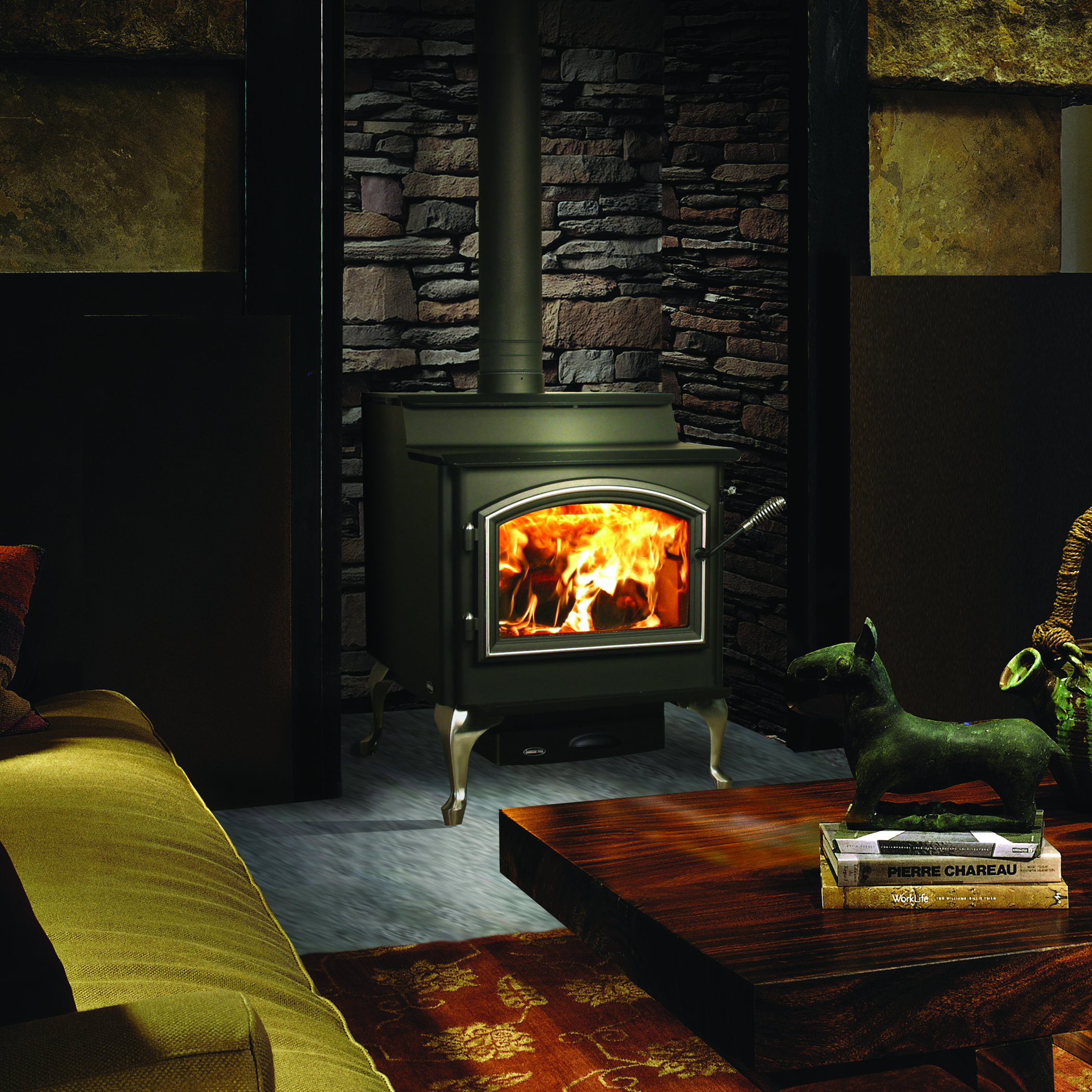 For an affordable and smaller option, Napoleon’s Timberwolf line is perfect for those who have never used a stove before or don’t have big rooms to heat.