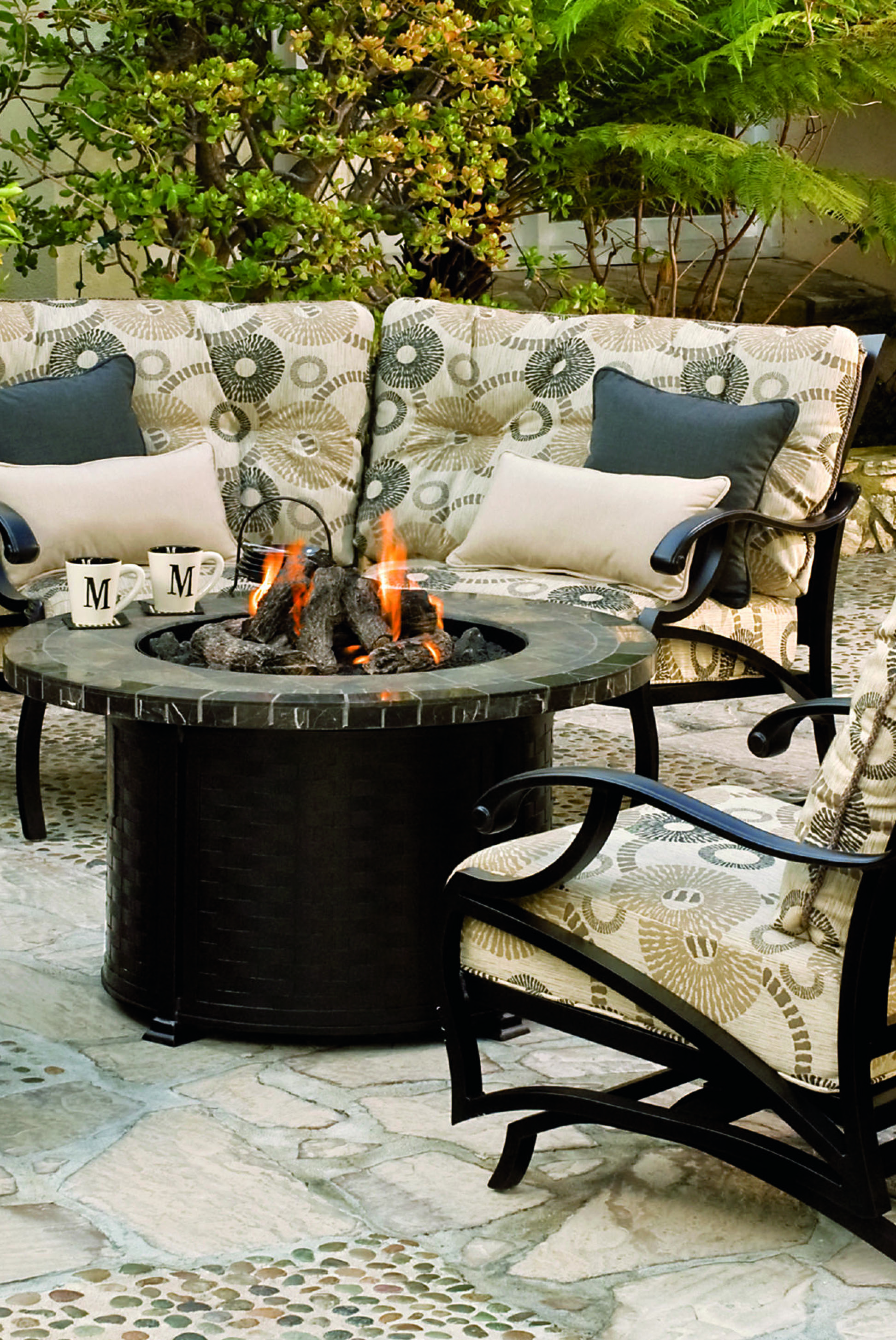 Mallin Casual’s Circular Fire Pit is another example of an outdoor piece capitalizing on the colors found in nature while incorporating them into an attractive design that blends with natural surroundings. The cast-aluminum base, deep seating, and extended armrest, which are hallmarks of this collection, are made for comfort. The autumn rust and eclipse stone color option paired with sleek slate top creates an ambiance of sophistication.