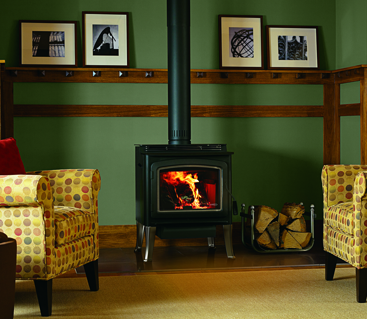 The Grandview 230 Wood-Burning Stove from Lennox is their latest EPA-certified entry from the Country Collection. Expansive ceramic glass gives unobstructed views of the fire, while the advanced refractory system and innovative heat exchanger combine to deliver the perfect amount of radiant heat. Easy operation and one-touch control make interaction a breeze.