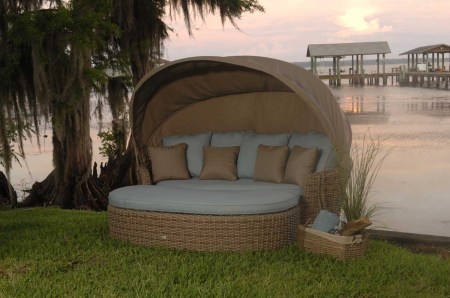 An outdoor bedroom may seem like a stretch, but with outdoor kitchens and outdoor family rooms all the rage, it’s not surprising that luxurious outdoor bedrooms would soon follow. Homeowners can now enjoy an afternoon snooze on one of the many outdoor beds that manufacturers are starting to release. Here are just a couple.