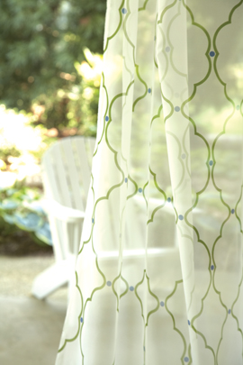 Solarium’s new decorative outdoor sheer collection has approximately 17 SKUs, mixing traditional to transitional looks. The sheers are all 100% polyester, are fade resistant, and have a water-repellent treatment, making them perfect for an outdoor room or a finishing touch to a gazebo.